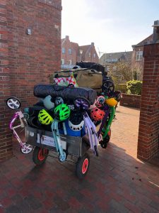 Es ist wieder Leben im Haus. Hier seht Ihr „Packkunst“ auf dem neuen Kuddel! – Der alte kleine Kuddel hatte seinen Geist aufgegeben. Es wurde Zeit für einen neuen. Und der kann was: Er ist nicht nur für den morgendlichen Brötchentransport gut geeignet, sondern auch für die Fahrräder von gefühlt 20 Kleinkindern!
