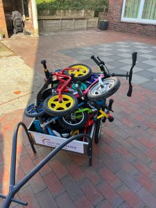 Es ist wieder Leben im Haus. Hier seht Ihr „Packkunst“ auf dem neuen Kuddel! – Der alte kleine Kuddel hatte seinen Geist aufgegeben. Es wurde Zeit für einen neuen. Und der kann was: Er ist nicht nur für den morgendlichen Brötchentransport gut geeignet, sondern auch für die Fahrräder von gefühlt 20 Kleinkindern!