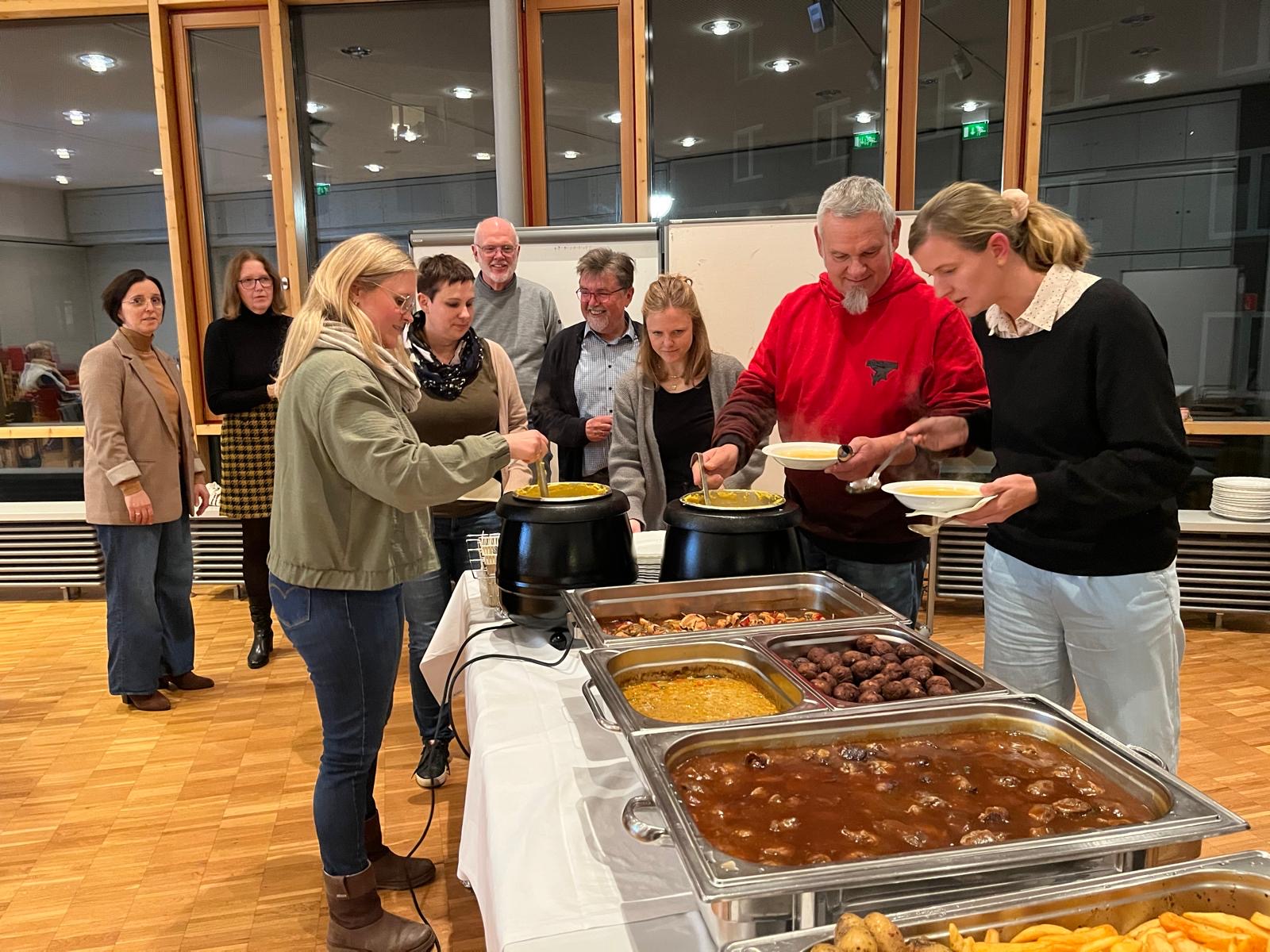 Tolle Stimmung bei der Vollversammlung aller Ehrenamtlichen in der Ev. Stiftung und in Haus Ibbenbüren. 33 von 42 Mitarbeitenden konnten teilnehmen und das gute Essen und Trinken genießen.